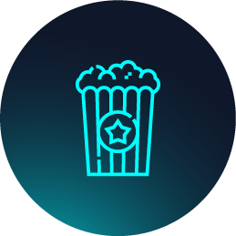 Ambiente de entretenimiento. Anuncios de próximas funciones, promociones de combo y estrenos de la semana.