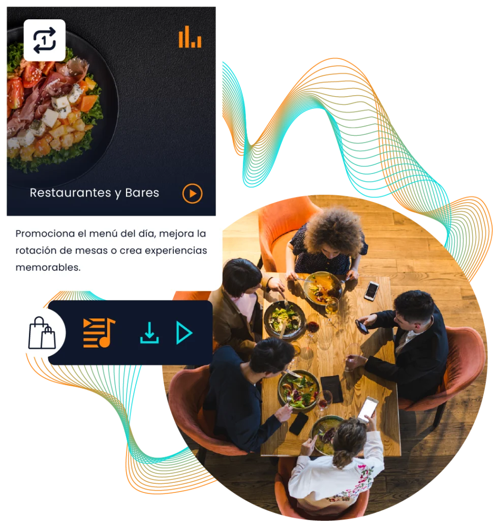 Música que rota mesas, promociona tu menú y crea experiencias. Todo gestionado por expertos y 100% legal.