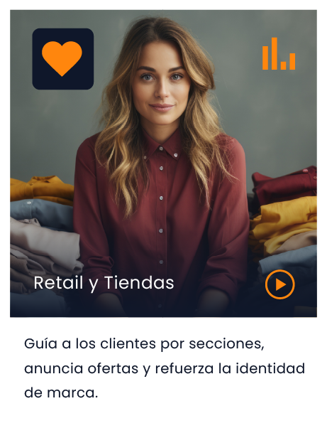 Guía el recorrido del cliente por la tienda, comunica ofertas en el momento adecuado y refuerza la identidad de marca en cada punto.