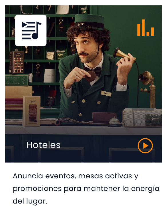 Cada industria enfrenta retos distintos y requiere una estrategia sonora específica.No es lo mismo optimizar la rotación en un restaurante, mantener la energía en un casino o generar calma en un spa. Por eso diseñamos la música y los mensajes de acuerdo con las dinámicas reales de tu sector y los objetivos de tu operación.